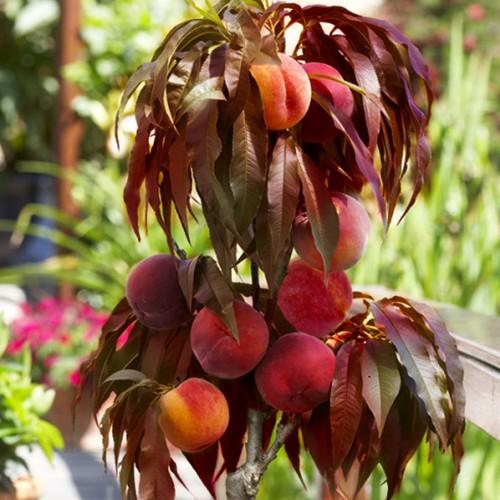 Productivity of red-leaved Burgundy peach: an adult tree can produce up to 10 kg of fruit.