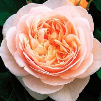 English peony rose Juliet is a variety characterized by delicate apricot-peach flowers with deep cup-shaped petals that gradually unfold, creating a multi-layered structure. The flowers have a pleasant light aroma with notes of tea and fruit. Flowering lasts throughout the season, and the plant forms a compact, thick bush, which gives it excellent decorativeness.