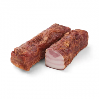 The product is made from selected pork breast, which goes through the process of marinating with spices, salt, garlic, black pepper and bay leaf. After that, the brisket is smoked over wood, without the use of liquid smoke, artificial dyes or flavors. Thanks to this, it acquires a rich aroma of wood smoke and a soft, but dense structure.
