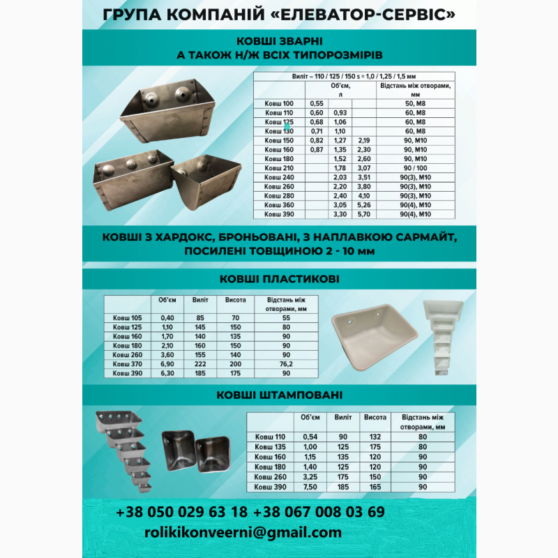 We produce: gravity pipes f200mm, f220mm, f300mm, f350mm, f400mm, f450mm. grain pipes diam. 140-500 mm, sectors, manual and electrically operated rail valves, manual and electrically operated reversing valves, transitions, non-standard elevator equipment, adapters from square to circle, adapters from circle to circle, SK elbows, SVO inlets, symmetrical round SVO inlets, KOR, KDR overturning valves with manual drive, with with an electric drive, rail latches with a manual drive and with an electric drive, norias