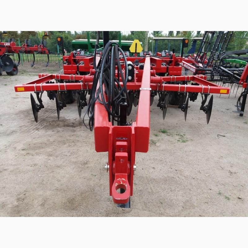 Independent hydraulic control of the X-shaped disc frame provides flexibility of settings depending on the size and density of the harvest residues, regardless of the set depth of processing with paws. Discs with a diameter of 610 mm have a thickness of 6.4 mm and are located at a distance of 380 mm from each other. The rear row of disks is offset relative to the front ones, which provides an effective cutting distance of 19 cm at a depth of up to 10.2 cm. The disks are installed on individual racks, so they are less susceptible to damage from hitting hard obstacles.