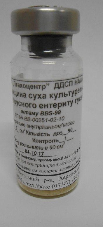each dose of the vaccine contains: live virus of viral enteritis of geese, stamp BBS-99, filler.