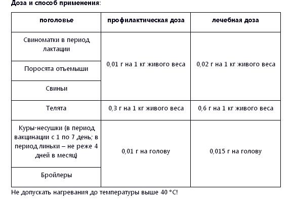 Lyophilized cells of strains with an activity of 1*109 CFU/g specially selected for antibiotic resistance and pronounced antagonism to pathogenic microflora (L. acidophilus, L. bulgaricus, L. plantarum, L. rhamnosus, L. salivarius, L. casei, L. sakei, L. lactis, L. cremoris, E. faecium, S. Thermophilus, B. bifidum, B. adolescentis, B. longum, B. infantis) fructooligosaccharides, group B vitamins, pectin, natural acidifier.