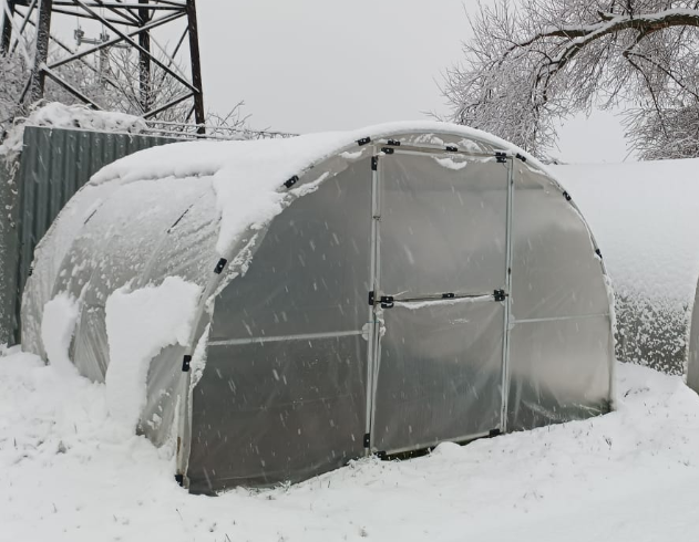 crab-system" (thickness 1.5 mm) allows you to strengthen the supporting elements of the greenhouse and guarantees high reliability of the entire structure, the ability of the roof of the greenhouse to withstand a heavy snow load and the complete absence of rust.