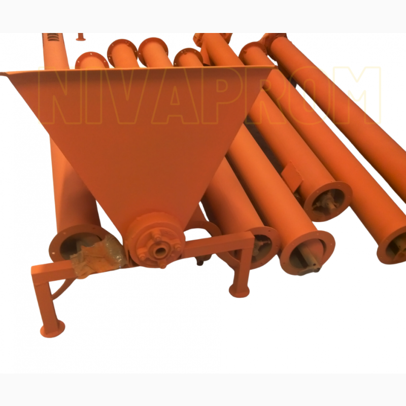 compound feed, bran, etc.) in horizontal or inclined directions The movement of the product takes place in the closed trough of the screw conveyor along the axis of the spiral shaft. Screw conveyors are used in the organization of loading and unloading operations, as well as as interoperational transport in compound feed productions,