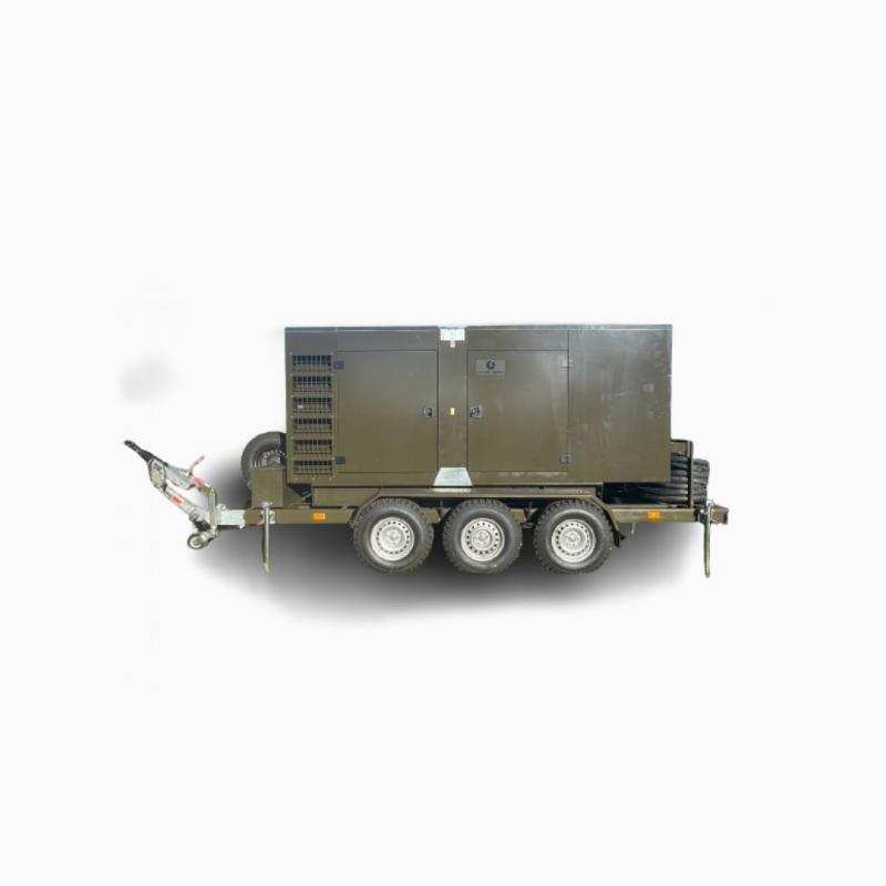 Mobile DIESEL GENERATOR CUMMINS C 475 D (415 kVa) in a casing, 345 kW on a wheeled chassis.