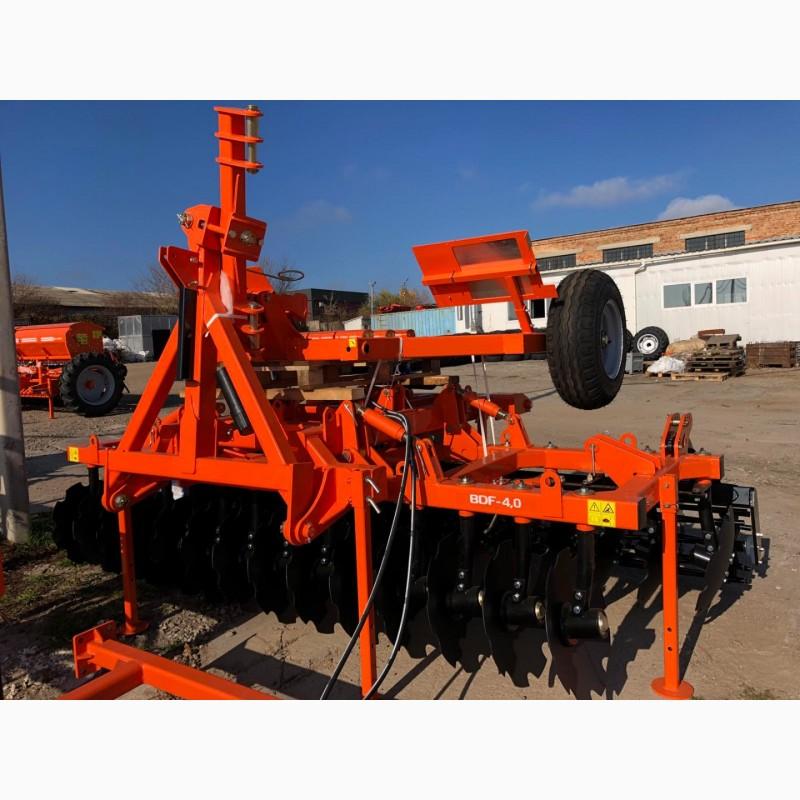 Disk harrow BDF-4,0 - designed for pre-sowing processing soil for sowing grain, technical and fodder crops, weed destruction and grinding of crop residues after harvesting crops, as well as leveling and compaction of the soil after disking.