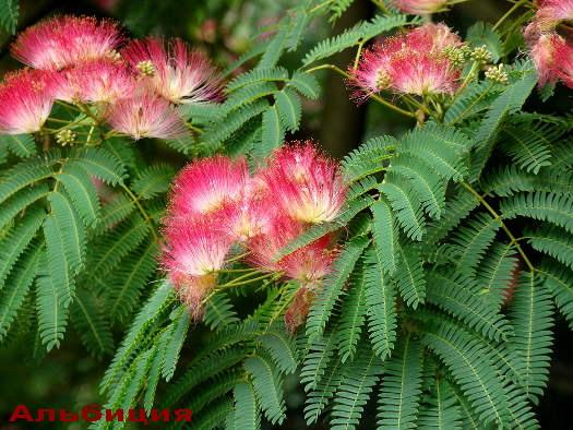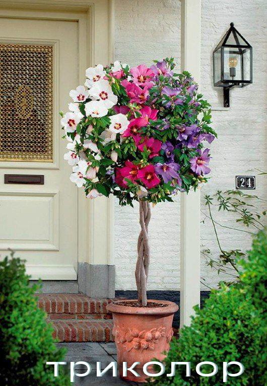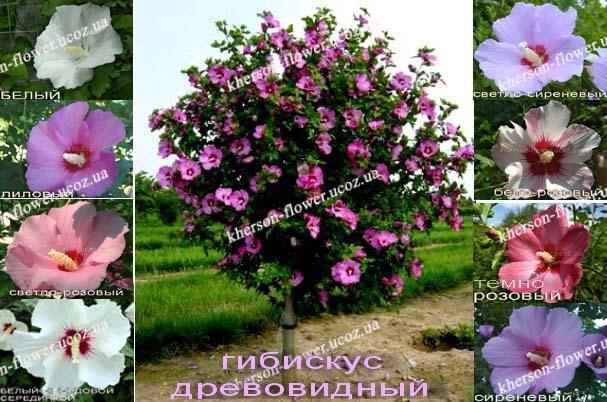 There are also other decorative trees, such as albicia, robinia glutinosa (pink acacia), bean tree, catalpa, paulownia, tree-like hibiscuses (simple and terry, tricolor, multi-grafted)