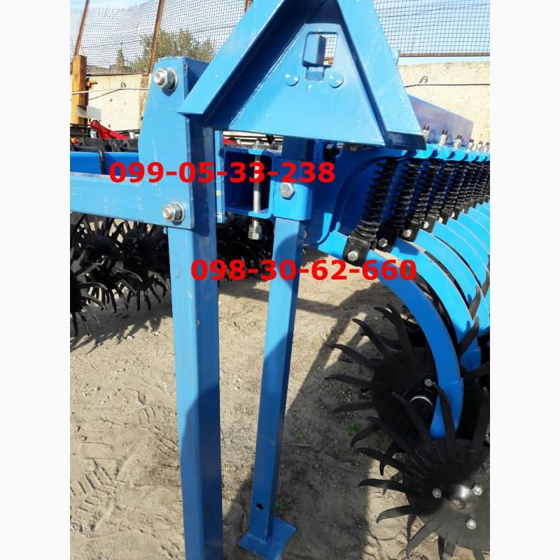 The unit effectively and evenly loosens the soil, without damaging the plants, and has a high frame, which allows inter-row processing in later periods of vegetation. The harrow is aggregated with tractors of class 1.4-2 t.s.