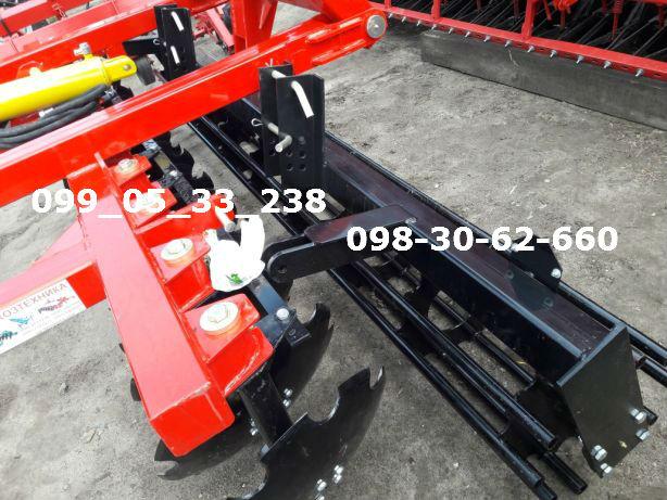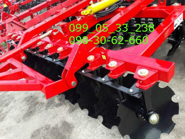 BPD harrow-3,200×2 ideal for fast, surface treatment of stubble with intensive mixing, works smoothly even with a large amount of straw. Treatment of corn fields with a large amount of straw and stubble is intended for resource-saving pre-sowing and main soil treatment to a depth of 8 to 15 cm for grain, technical and fodder crops, destruction of weeds and grinding of crop residues after harvesting crops, rejuvenation of meadows and pastures, as well as grinding, leveling and compaction of the soil.