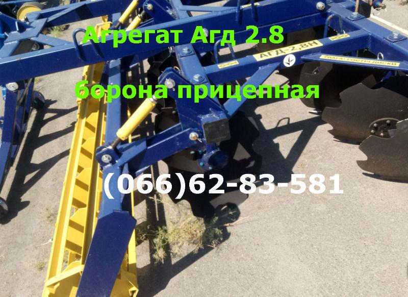 Aggregate Agd 2.8H trailed harrow - mounted newDisk harrow trailed AGD-2.1H, AGD-2.5H, AGD-2.8H, AGD-3.5H, AGD-4.5H trailed harrows AGD-2.1HTractor with which the MTZ is aggregated - 80/82/100/102 AGD-2.5H trailed disc harrows The unit is designed to work with tractors of class 14 kN (1.4 ts) AGD-2.8H trailed disc harrows Compatible tractor: MTZ-100/102 Trailed disk harrows AGD-3.5N The unit is designed to work with tractors of the 30 kN class ( T-150 ) Trailed disk harrows AGD-4.5N Tractor compatible: T-150, K-700, T-170, MTZ-2022 Mounted Disk Harrows - With Delivery By Ukraine