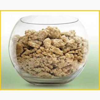 soy cake: crumbly medium-grained mass and granules.
