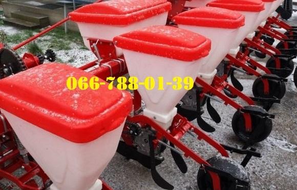 precise sowing calibrated seeds of corn, sunflower, castor, sorghum, soybeans, as well as seeds of fodder beans, beans, lupine with simultaneous introduction of granular mineral fertilizers separate from the seeds and rolling of the soil in the rows. Seeders provide sowing at the exact distance, excluding the use of manual labor when forming the required interval between plants. SUPN-8 creation of a vacuum in the pneumatic system is provided by a fan. The fan of the new sample (as on the UPS seeder) works directly from the power take-off shaft. Planters are aggregated with YuMZ, MTZ-80/82, T-70S tractors. A harrow is installed on the sowing disk, which prevents the compaction and suspension of seeds in the chamber of the sowing device. An unloading hatch is provided in the bunker to remove the remains of mineral fertilizers. It is possible to install an electronic seed sowing control system upon request. The use of capron bunkers significantly increases the unit's resistance to weathering.