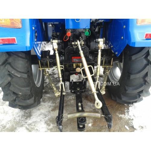 Portal-type front axle (with on-board gearboxes), which improves tractor traction characteristics, increases ground clearance, and reduces the size of the main gear housing. The front axle is mechanically connected by a lever. The hood is easily raised with the help of shock absorbers. A conveniently located hole on the hood provides access to the fuel tank neck. Air filter of the inertia-oil type. Manual gas. Hours counter.