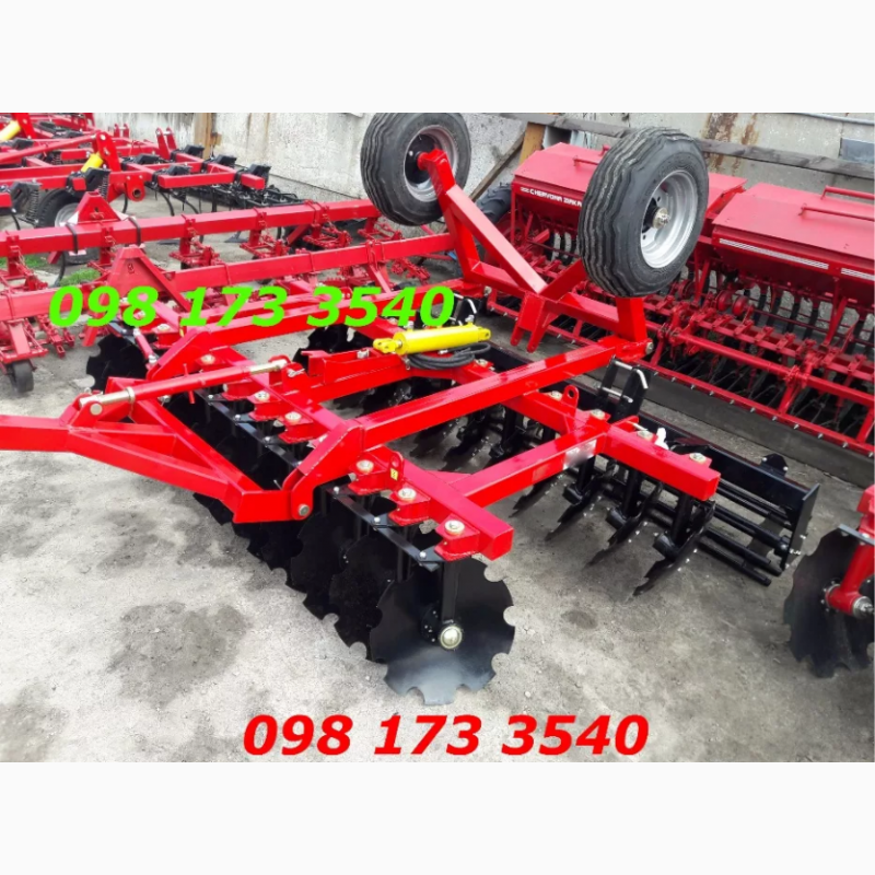 Each disc of the harrow is installed on an individual stand, which allows the harrow to work in fields with a large amount of plant residues and weeds, excluding the winding of plant residues on the axis of the disc and clogging of the space between the discs, and also ensures high maintainability of the unit.